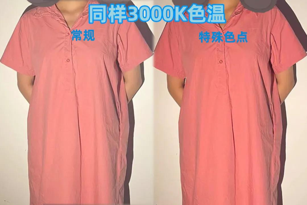 普通3000K照服装总会带点黄色显得旧,特殊色点3000K照服装,颜色更鲜艳。说这么多,客户表示,我听不懂。咋办?那就直接看效果吧。有什么比亲身体验更能打动客户的呢?是拿一堆灯点亮吗?