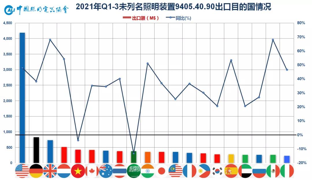 9405.40.90在2021年继续保持增长,前三季度出口金额达到162亿美元,同比增长37.3%。增长原因在于: