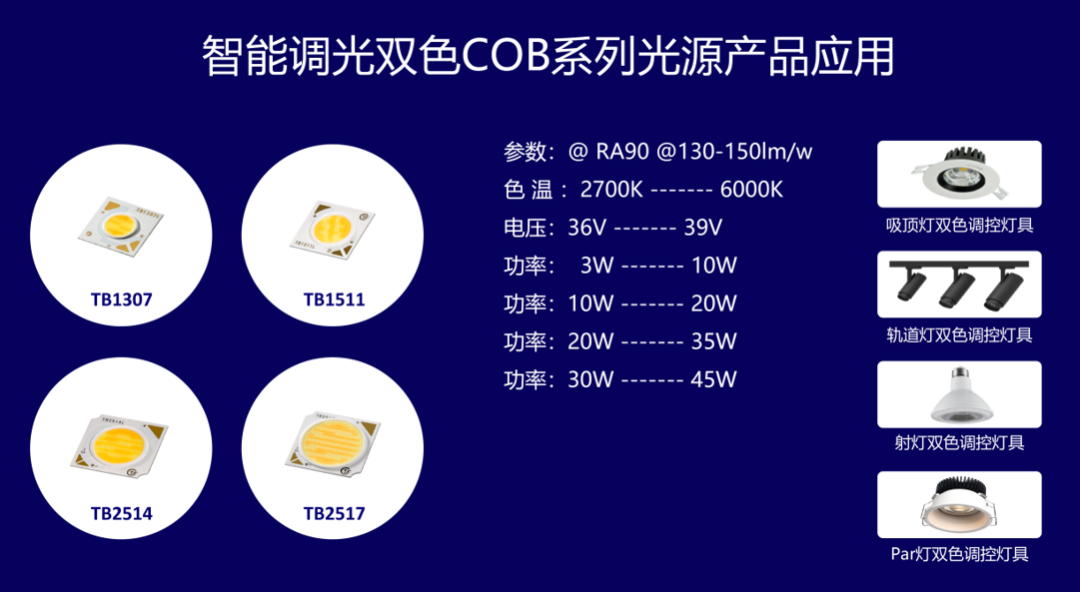 TYF同一方智能照明产品双色COB,TB8系列调光调色,通过智能控制,1800-6000K的色温范围内进行灵活调节,用户可以轻松切换或混合这两种色温,以满足不同场景和时间的照明需求,适用于各类智能照明场景...
