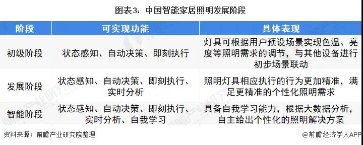 从智能家居照明的发展阶段来划分,大致可分为初级、发展及智能阶段。