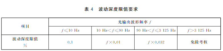 4.灯具在其额定电压工作时,其光输出波形的波动深度应符合表4的要求。