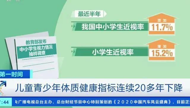 受多重因素影响,我国青少年视力健康每况愈下。2020年,教育部对九省份部分学生的一项调研显示,与2019年底相比,半年来学生近视率增加了11.7%,其中小学生近视率增加了15.2%,初中生增加了8.2%,高中生增加了3.8%。近视的给孩子身体带来的危害,绝不是配一副眼镜就能消除,中国近视率持续保持世界第一,绝不是一个令人骄傲的成绩。