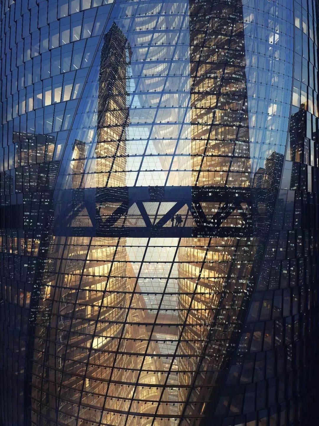 内透光是不规律的,灯光随着点亮的窗户参差。也许这扇窗户亮了,那扇窗户却灭了。这种随机的偶然性,仿佛正与我们的人生相呼应,这也是我们的存在方式。存在主义哲学认为,人是“被抛入的设计”,人是充满偶然性地来到世间的,并在其中不断自我设计(自我选择、自我创造),从而达到一种自由。面对内透光组成的天际线,我们是否能在这种变动不居中寻找到一种自由?